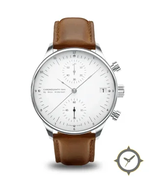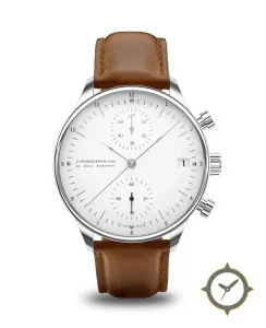Eine Chronograph-Uhr mit einem 35.5mm Gehäuse im Vintage-Stil gefertigt aus Edelstahl mit einem Zifferblatt in weiß und einer besonderen "smooth"-Oberfläche.