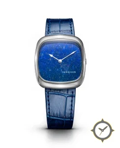 Eine Dress-Uhr mit einem vielseitigen 41mm Gehäuse, das an fast jedes Handgelenk passt, gefertigt aus Edelstahl mit einem Zifferblatt in blau und einer besonderen "lapis lazuli / stone with gold flecks (textured)"-Oberfläche.