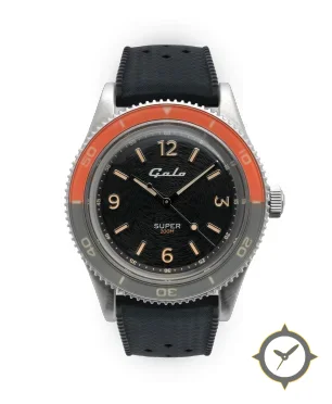 Eine Taucheruhr-Uhr mit einem vielseitigen 41mm Gehäuse, das an fast jedes Handgelenk passt, gefertigt aus Edelstahl mit einem Zifferblatt in schwarz und einer besonderen "radial textured grain (subtle concentric rings)"-Oberfläche.