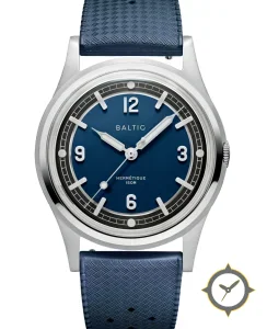 Eine Vintage-Uhr mit einem vielseitigen 40.5mm Gehäuse, das an fast jedes Handgelenk passt, gefertigt aus Edelstahl mit einem Zifferblatt in blau und einer besonderen "matte, slightly grained"-Oberfläche.