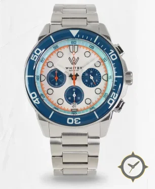 Eine Taucheruhr-Uhr mit einem markanten 52mm Auftritt am Handgelenk, gefertigt aus Edelstahl mit einem Zifferblatt in weiß und einer besonderen "lacquered"-Oberfläche.