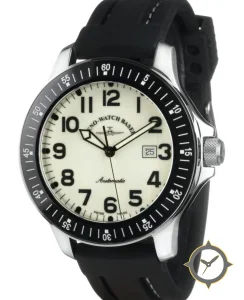 Eine Pilot-Uhr gefertigt aus Edelstahl mit einem Zifferblatt in weiß und einer besonderen "matte, luminous dial (cream/ivory lume)"-Oberfläche.