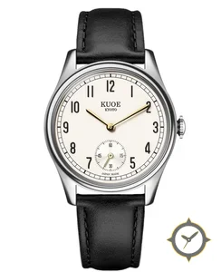 Eine Dress-Uhr mit einem vielseitigen 40.5mm Gehäuse, das an fast jedes Handgelenk passt, gefertigt aus Edelstahl mit einem Zifferblatt in weiß und einer besonderen "matte"-Oberfläche.