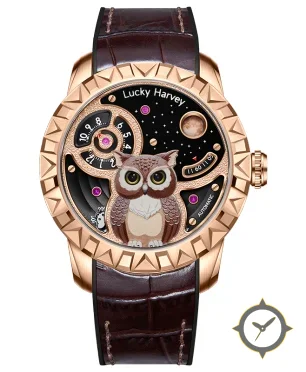 Eine Luxus-Uhr mit einem markanten 50mm Auftritt am Handgelenk, gefertigt aus Gold mit einem Zifferblatt in schwarz und einer besonderen "multi-layered with applied elements and textured starry background"-Oberfläche und einer wunderschönen Mondphasenanzeige.