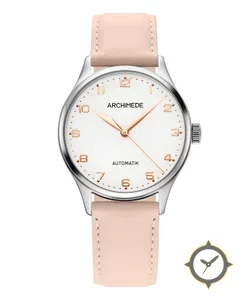 Eine Dress-Uhr mit einem 37mm Gehäuse im Vintage-Stil gefertigt aus Edelstahl mit einem Zifferblatt in weiß und einer besonderen "matte"-Oberfläche.