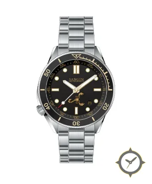 Eine Taucheruhr-Uhr mit einem vielseitigen 39mm Gehäuse, das an fast jedes Handgelenk passt, gefertigt aus Edelstahl mit einem Zifferblatt in schwarz und einer besonderen "matte"-Oberfläche.