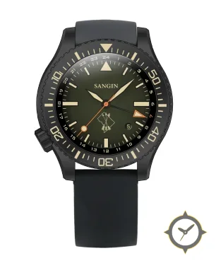 Eine Taucheruhr-Uhr mit einem markanten 42.5mm Auftritt am Handgelenk, gefertigt aus Edelstahl mit einem Zifferblatt in grün und einer besonderen "ombré sunburst"-Oberfläche.