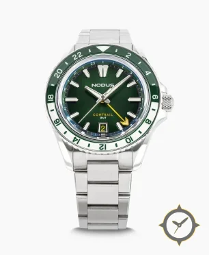 Eine GMT-Uhr mit einem markanten 47mm Auftritt am Handgelenk, gefertigt aus Edelstahl mit einem Zifferblatt in grün und einer besonderen "sunburst"-Oberfläche und einer echten GMT-Funktion, mit der du eine zweite Zeitzone verfolgen kannst.