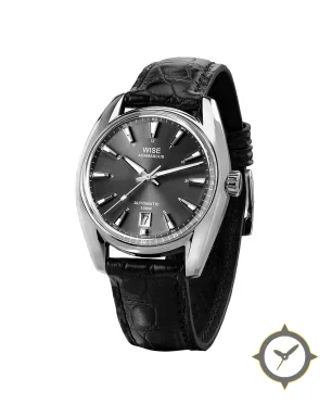Eine Dress-Uhr mit einem vielseitigen 41mm Gehäuse, das an fast jedes Handgelenk passt, gefertigt aus Edelstahl mit einem Zifferblatt in grau und einer besonderen "sunburst"-Oberfläche.