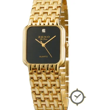 Eine Dress-Uhr gefertigt aus Gold mit einem Zifferblatt in schwarz und einer besonderen "lacquer (matte)"-Oberfläche.