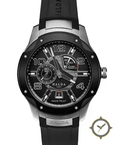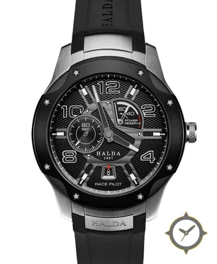 Eine Racing-Uhr mit einem markanten 48mm Auftritt am Handgelenk, gefertigt aus Edelstahl mit einem Zifferblatt in schwarz und einer besonderen "textured waffle/grain"-Oberfläche und einer praktischen Gangreserveanzeige.
