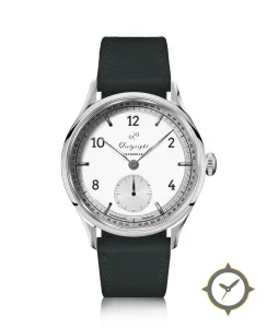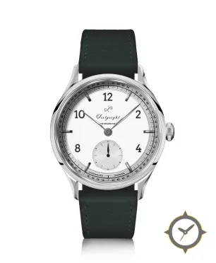 Eine Dress-Uhr mit einem 37.5mm Gehäuse im Vintage-Stil gefertigt aus Edelstahl mit einem Zifferblatt in weiß und einer besonderen "smooth lacquer"-Oberfläche.