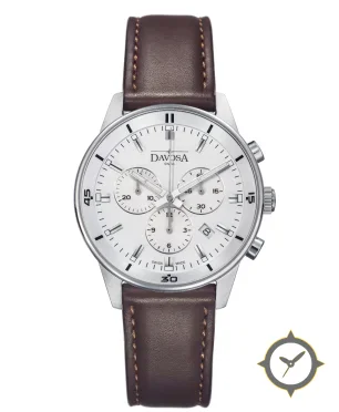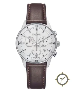 Eine Chronograph-Uhr mit einem markanten 45.5mm Auftritt am Handgelenk, gefertigt aus Edelstahl mit einem Zifferblatt in weiß und einer besonderen "matte"-Oberfläche.