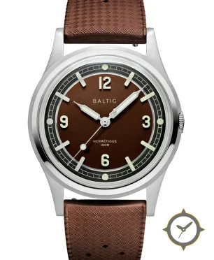 Eine Taucheruhr-Uhr mit einem markanten 41.5mm Auftritt am Handgelenk, gefertigt aus Edelstahl mit einem Zifferblatt in braun und einer besonderen "matte"-Oberfläche.