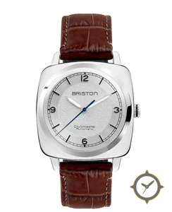 Eine Dress-Uhr mit einem 32.5mm Gehäuse im Vintage-Stil gefertigt aus Edelstahl mit einem Zifferblatt in silber und einer besonderen "grained/pebble-textured center with smooth outer chapter ring"-Oberfläche.