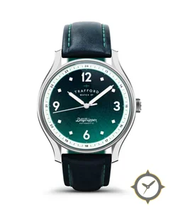 Eine GMT-Uhr mit einem markanten 42mm Auftritt am Handgelenk, gefertigt aus Edelstahl mit einem Zifferblatt in grün und einer besonderen "sunburst"-Oberfläche und einer echten GMT-Funktion, mit der du eine zweite Zeitzone verfolgen kannst.
