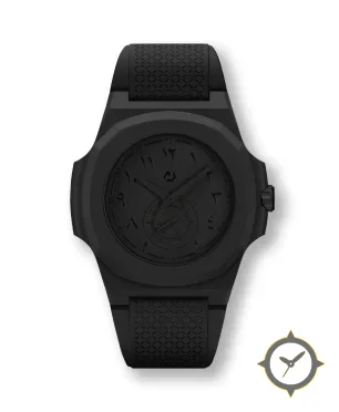 Eine Minimalistisch-Uhr mit einem 34mm Gehäuse im Vintage-Stil gefertigt aus Keramik mit einem Zifferblatt in schwarz und einer besonderen "matte"-Oberfläche.