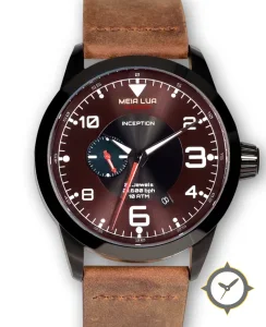 Eine Pilot-Uhr mit einem vielseitigen 41mm Gehäuse, das an fast jedes Handgelenk passt, gefertigt aus Edelstahl mit einem Zifferblatt in braun und einer besonderen "sunburst"-Oberfläche.