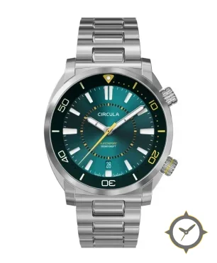 Eine Taucheruhr-Uhr mit einem vielseitigen 38mm Gehäuse, das an fast jedes Handgelenk passt, gefertigt aus Edelstahl mit einem Zifferblatt in grün und einer besonderen "sunburst gradient"-Oberfläche.