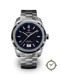Eine Sport-Uhr mit einem 31.5mm Gehäuse im Vintage-Stil gefertigt aus Edelstahl mit einem Zifferblatt in marineblau und einer besonderen "aventurine / sparkling (starry)"-Oberfläche.