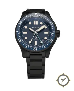 Eine Taucheruhr-Uhr mit einem markanten 42.5mm Auftritt am Handgelenk, gefertigt aus Edelstahl mit einem Zifferblatt in marineblau und einer besonderen "matte"-Oberfläche.