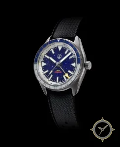 Eine GMT-Uhr mit einem markanten 43mm Auftritt am Handgelenk, gefertigt aus Edelstahl mit einem Zifferblatt in marineblau und einer besonderen "sparkling/aventurine (starry)"-Oberfläche und einer echten GMT-Funktion, mit der du eine zweite Zeitzone verfolgen kannst.