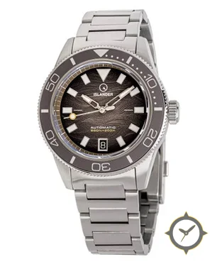 Eine Taucheruhr-Uhr mit einem 32.5mm Gehäuse im Vintage-Stil gefertigt aus Edelstahl mit einem Zifferblatt in braun und einer besonderen "wood-grain / textured (horizontal grain)"-Oberfläche.