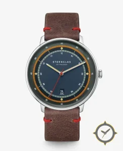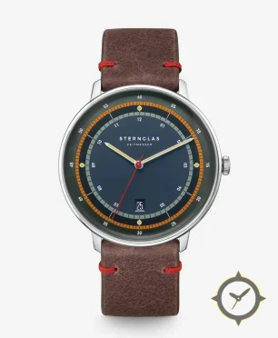 Eine Minimalistisch-Uhr mit einem vielseitigen 38.5mm Gehäuse, das an fast jedes Handgelenk passt, gefertigt aus Edelstahl mit einem Zifferblatt in marineblau und einer besonderen "matte"-Oberfläche.