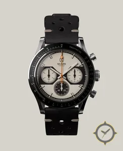 Eine Panda-Uhr mit einem markanten 43mm Auftritt am Handgelenk, gefertigt aus Edelstahl mit einem Zifferblatt in weiß und einer besonderen "matte"-Oberfläche.