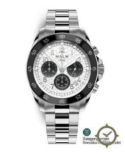 Eine Chronograph-Uhr mit einem 34.5mm Gehäuse im Vintage-Stil gefertigt aus Edelstahl mit einem Zifferblatt in weiß und einer besonderen "hexagonal honeycomb texture"-Oberfläche.
