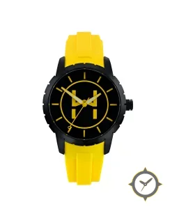 Eine Sport-Uhr mit einem markanten 42.5mm Auftritt am Handgelenk, gefertigt aus Harz mit einem Zifferblatt in schwarz und einer besonderen "matte"-Oberfläche.