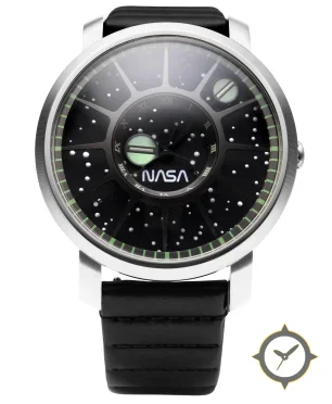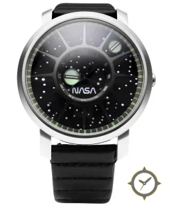 Eine Luftfahrt-Uhr mit einem markanten 46.5mm Auftritt am Handgelenk, gefertigt aus Edelstahl mit einem Zifferblatt in schwarz und einer besonderen "starry/speckled"-Oberfläche und einer wunderschönen Mondphasenanzeige.