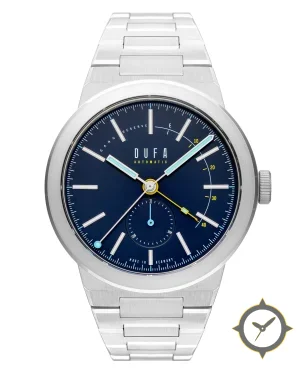 Eine Sport-Uhr mit einem 37.5mm Gehäuse im Vintage-Stil gefertigt aus Edelstahl mit einem Zifferblatt in blau und einer besonderen "sunburst"-Oberfläche und einer praktischen Gangreserveanzeige.