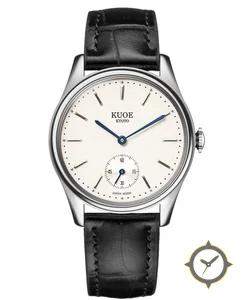 Eine Dress-Uhr mit einem 30mm Gehäuse im Vintage-Stil gefertigt aus Edelstahl mit einem Zifferblatt in weiß und einer besonderen "matte"-Oberfläche.