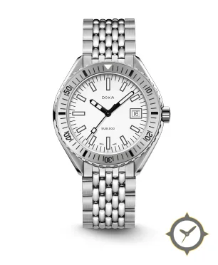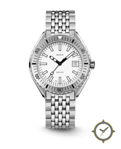 Eine Taucheruhr-Uhr mit einem 36.5mm Gehäuse im Vintage-Stil gefertigt aus Edelstahl mit einem Zifferblatt in weiß und einer besonderen "smooth lacquer / matte finish"-Oberfläche.