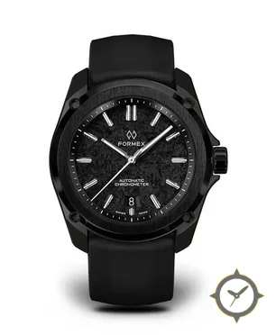 Eine Sport-Uhr mit einem markanten 42mm Auftritt am Handgelenk, gefertigt aus Edelstahl mit einem Zifferblatt in schwarz und einer besonderen "forged carbon / textured"-Oberfläche.