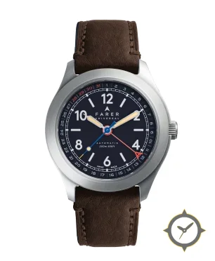 Eine Field-Uhr mit einem 33mm Gehäuse im Vintage-Stil gefertigt aus Edelstahl mit einem Zifferblatt in marineblau und einer besonderen "matte"-Oberfläche.
