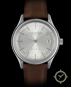 Eine Minimalistisch-Uhr mit einem 36.5mm Gehäuse im Vintage-Stil gefertigt aus Edelstahl mit einem Zifferblatt in silber und einer besonderen "sunburst brushed"-Oberfläche.