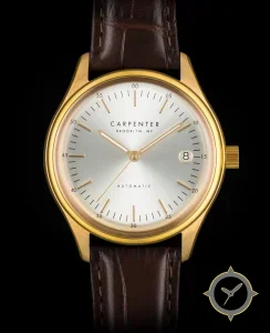 Eine Dress-Uhr mit einem vielseitigen 40.5mm Gehäuse, das an fast jedes Handgelenk passt, gefertigt aus Gold mit einem Zifferblatt in silber und einer besonderen "sunburst (radial brushed)"-Oberfläche.