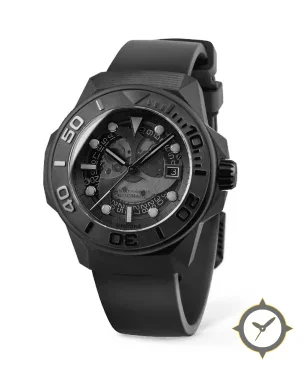 Eine Sport-Uhr mit einem 35.5mm Gehäuse im Vintage-Stil gefertigt aus Edelstahl mit einem Zifferblatt in schwarz und einer besonderen "open-worked / skeletonized"-Oberfläche.