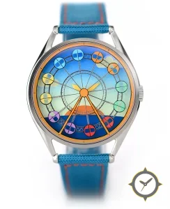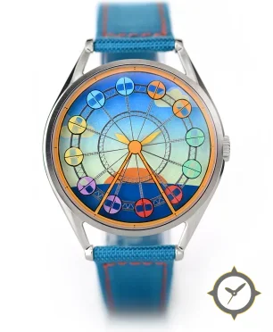 Eine Dress-Uhr mit einem markanten 43.5mm Auftritt am Handgelenk, gefertigt aus Edelstahl mit einem Zifferblatt in blau und einer besonderen "printed gradient"-Oberfläche.