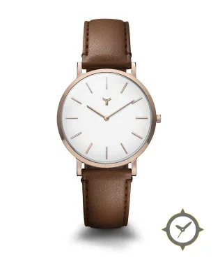Eine Minimalistisch-Uhr mit einem vielseitigen 41mm Gehäuse, das an fast jedes Handgelenk passt, gefertigt aus Edelstahl mit einem Zifferblatt in weiß und einer besonderen "smooth"-Oberfläche.