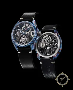 Eine Skelett-Uhr gefertigt aus Titan mit einem Zifferblatt in schwarz und einer besonderen "skeletonized/open-work"-Oberfläche.