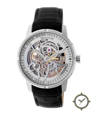 Eine Skelett-Uhr mit einem markanten 50mm Auftritt am Handgelenk, gefertigt aus Edelstahl mit einem Zifferblatt in silber und einer besonderen "skeletonized"-Oberfläche.