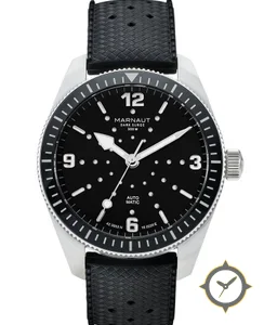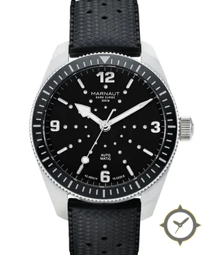 Eine Taucheruhr-Uhr mit einem markanten 41.5mm Auftritt am Handgelenk, gefertigt aus Edelstahl mit einem Zifferblatt in schwarz und einer besonderen "matte"-Oberfläche.