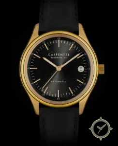 Eine Dress-Uhr mit einem vielseitigen 40.5mm Gehäuse, das an fast jedes Handgelenk passt, gefertigt aus Gold mit einem Zifferblatt in schwarz und einer besonderen "sunburst"-Oberfläche.