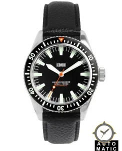 Eine Taucheruhr-Uhr mit einem markanten 42mm Auftritt am Handgelenk, gefertigt aus Edelstahl mit einem Zifferblatt in schwarz und einer besonderen "matte"-Oberfläche.