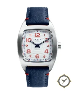 Eine Dress-Uhr mit einem 34.5mm Gehäuse im Vintage-Stil gefertigt aus Edelstahl mit einem Zifferblatt in weiß und einer besonderen "guilloché concentric-square (textured)"-Oberfläche.