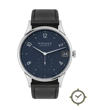 Eine Minimalistisch-Uhr mit einem vielseitigen 41mm Gehäuse, das an fast jedes Handgelenk passt, gefertigt aus Edelstahl mit einem Zifferblatt in marineblau und einer besonderen "matte"-Oberfläche.