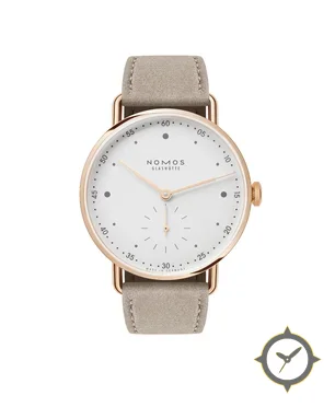 Eine Minimalistisch-Uhr mit einem vielseitigen 38mm Gehäuse, das an fast jedes Handgelenk passt, gefertigt aus Gold mit einem Zifferblatt in weiß und einer besonderen "smooth matte"-Oberfläche.